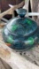 Hand Painted Wooden Jar with Red Macaw Parrot and Tree Design against a Dark Sky