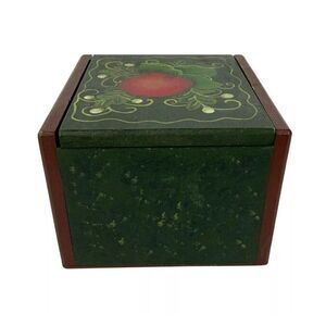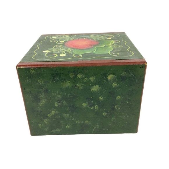 Hand Painted Wooden Recipe Card Box Apple Design Green Red Farmhouse Style
