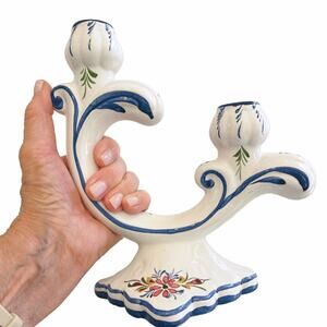 Hand Painted in Portugal Double Candle Holder 8” Tall.