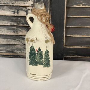 Hand Painted Pine Trees on old bottle Red Pine Cones