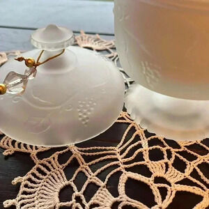 This hand poured soy candle has the scent of “Winter”. Pine, clove, and clementine mingle with juniper berries and fir. The upcycled footed vessel is made of frosted glass and the charm adorning the handle is made with vintage glass faceted beads. The wood wick burns with a light crackle, remniscent of a warm fire on a cold winter’s night. ❄️