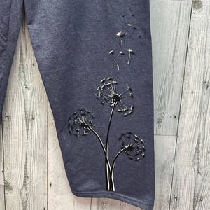 Hand Printed Upcycled 2X Dandelion Make a Wish Cozy PolyCotton Sweatpants