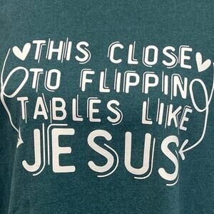 Hand Printed Upcycled Mens Medium This Close to Flippin Tables Like Jesus Tee Shirt