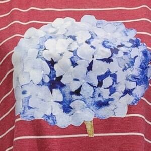 Hand Printed Upcycled Womens Large Hydrangea Floral Short Sleeve Tee Shirt