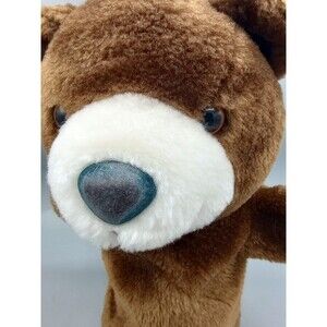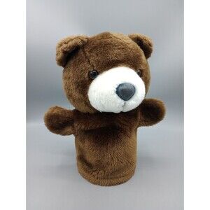 This adorable brown bear hand puppet is the perfect addition to any child's toy collection. Its soft and plush material makes it great for cuddling or playtime, and it is washable for easy cleaning. The bear is small in size, measuring 6-14 inches, and is recommended for children ages 3 and up.