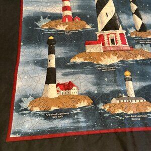Hand Quilted Panel Theme of Lighthouses, Finished, 40” x 31” w/ Rod Pocket