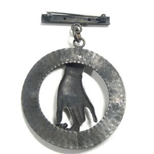 Hand Reaching For Flower In Circle Vintage Brooch Antique Pin