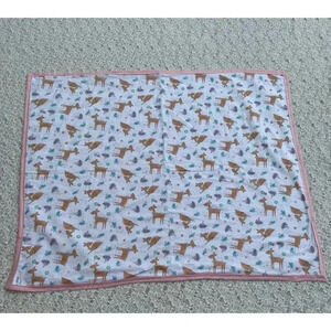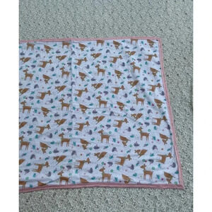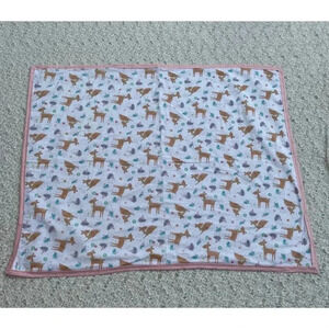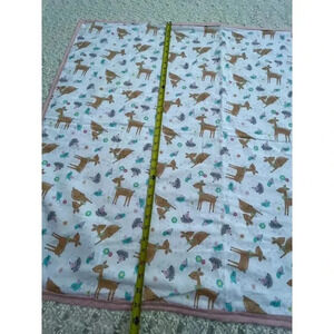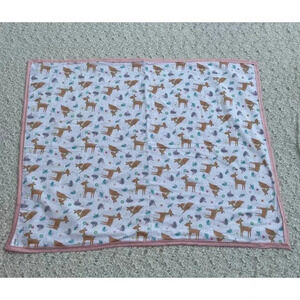 Hand Sewn By Marta Chacon Handmade Deer Print Baby Blanket Pink White 35"x44"