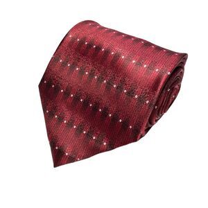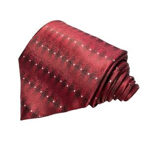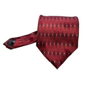 Hand Sewn Men’s Imported Silk Red Tie. Solid red. Silver design on the front & back. 100% Silk. Designed to coordinate with any shirt. Logo tag has been removed as shown above in photos✨