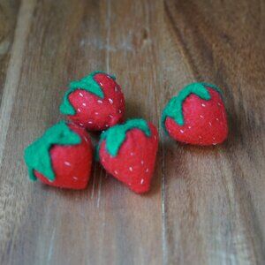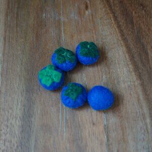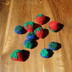 This hand-sewn felt berry set includes 5 blueberries and 5 strawberries—perfect for play kitchens, pretend farmers markets, or adding a pop of color to imaginative play. Each berry is carefully stitched by hand and made to last.