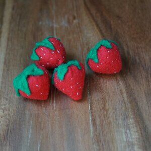 play food, felt strawberries, pretend play, Montessori toy, play kitchen, eco-friendly toy, handmade toy, imaginative play, fruit toy, mini play food