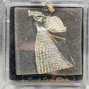 Hand Spun Glass Angel With Horn Christmas Holiday Ornament Box Santa's Workbench