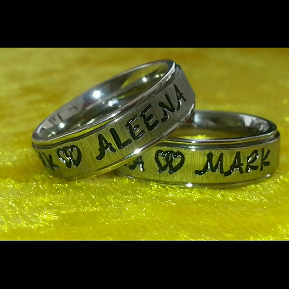 Beautiful unique cut personalized rings. I hand stamp nickel & lead FREE stainless steel rings with whatever you would like! Great idea for Mom's and Dads with names of children, great memorial rings or for any special occasion. Just let me know what you would like on your ring and I'll make for you! This is a listing for one ring only! I can make deals on multiples! Thanks for checking happy poshing!