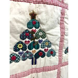 Hand Stitch Christmas Tree Patchwork Heart Quilt Beige Rectangular Buttons