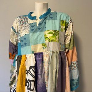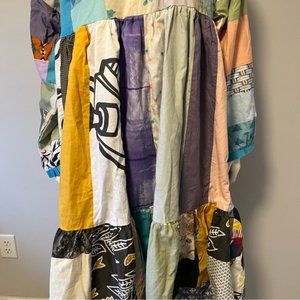 Hand Stitched Patchwork Multicolored Spring Tiered Maxi Dress Size L
