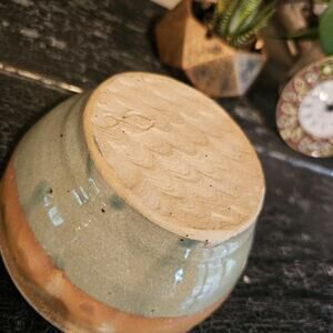 Hand Thrown Ceramic Soup Bowl in Sage Green and Tan