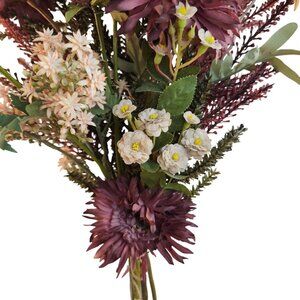 Hand Tied Artificial Flower Bouquet With Burgundy Purple Cream and Green Tones