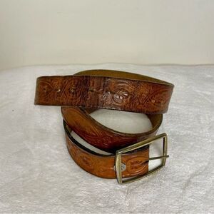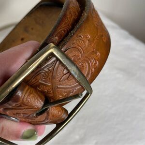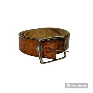 Hand Tooled Belt Leather Decorative Design Scroll Handcrafted Handmade Brown