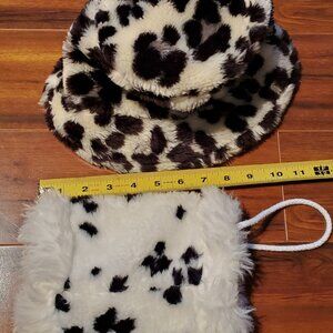 Hand Warmer Muff Faux Dalmation Fur Girls Plus Bonus Hat - Black White Spotted