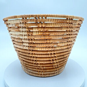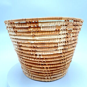 Hand Woven Coiled Basket Planter Grass Boho Natural Decor Handmade 6.5"