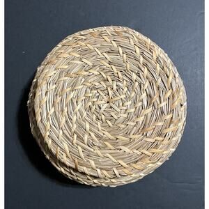 Hand Woven Decorative Seagrass Wicker Storage Basket Container w Lid 7.5” X 4”