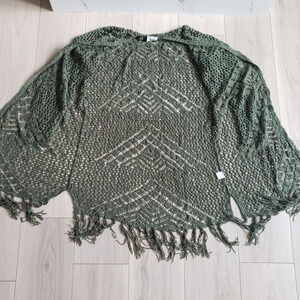 Hand Woven Jacket Women M Unicorn Tribe Army Green Layering Poncho Wrap Cardigan