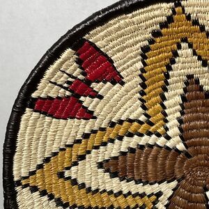 This hand-woven tray coil basket featuring a flower and butterfly design is made by the Wounaan Tribe in Native America. Measuring 11.75 inches, this handmade basket is a beautiful representation of the traditional craftsmanship of the tribe. Made in the United States, this unique piece showcases the intricate techniques and cultural significance of Native American basket weaving. Perfect for collectors or those interested in exploring the rich heritage of Native American craftsmanship.