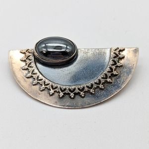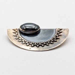 Hand Wrought Sterling Silver Modernist Half Circle Brooch with Hematite Stone