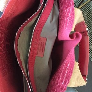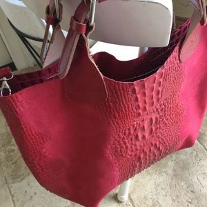 Really leather, brand new I bought from Italy its has zip up bag inside and additional strap for cross-body..