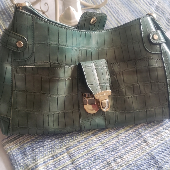 Liz Claiborne leather bag. 3 compartments .middle one with zipper 13x8