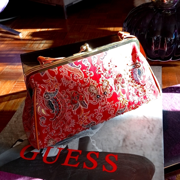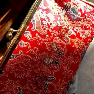 red purse from India.with beads and sequins. so precious. ease opening snap like new!