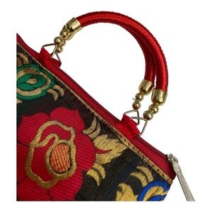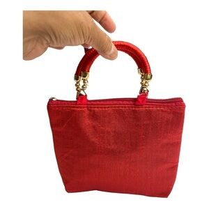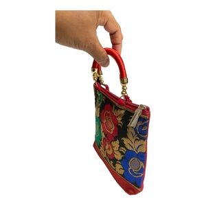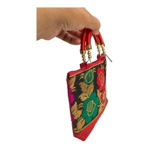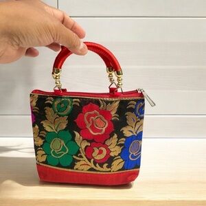 Hand bag raw silk with floral prints small. Asian, colorful, lightweight, cute