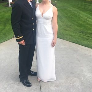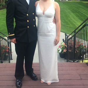 Gorgeous white hand beaded gown from Aidan Mattox. Worn only once. In perfect condition. I am 5'4" and wore 3 inch heels. I also have a 34DD chest and was able to wear the dress all night without support