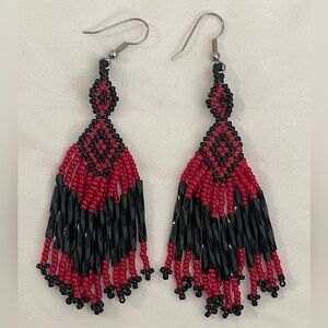 #beads #earrings #red #black #dangle #piercedears #handcrafted #handmade