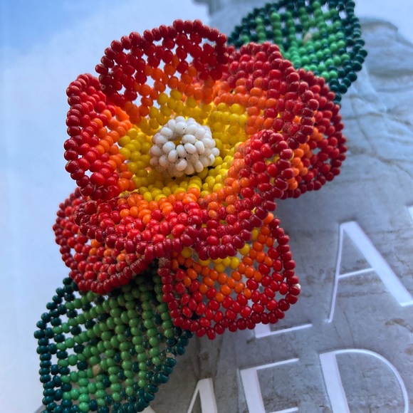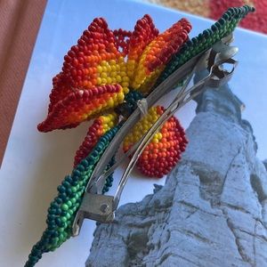 Beautiful Huichol beaded barrette hand made, one petal is loose, used in good condition