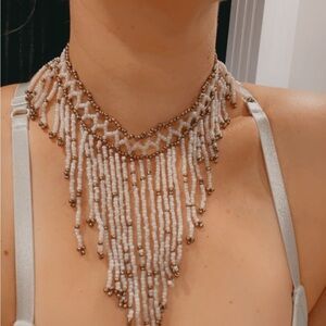 Beautiful hand beaded choker with pearl and bronze colored beads.