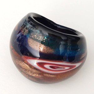 worn a few times. Noted flaws-some minor bubbles in glass. Rings rim in a few spots is slightly textured and not smooth. Otherwise, good condition.