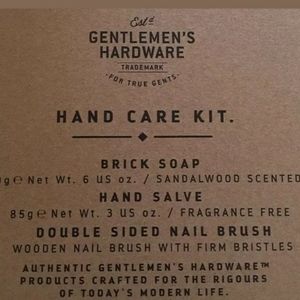 Perfect gift. Unopened, boxed gift set. Includes brick soap, hand salve and nail brush.