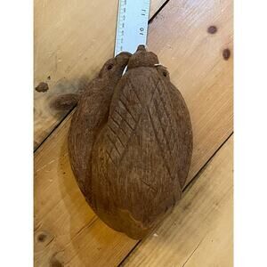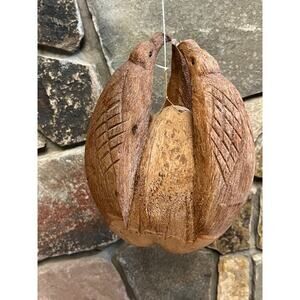 Hand carved Coconut Shell Birds. Bird feeder/Planter. Folk Art? Tiki Beach