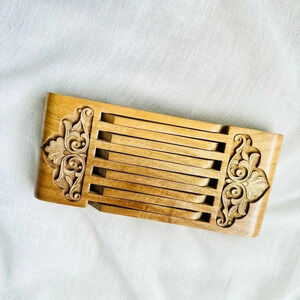 🌺STYLE : Hand carved Foldable Wooden Book Stand with folk art