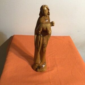 Beautiful Holy Land Olive Wood carved statue, nice details and well done. This stands 9” tall and base is 2” wide. A lovely addition to your home. ✨