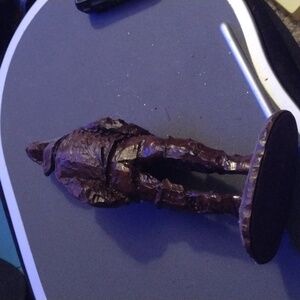stands 11" and is heavy.looks like a fisherman in boots.exceptional well crafted piece.,a picture doesn't do this art justice