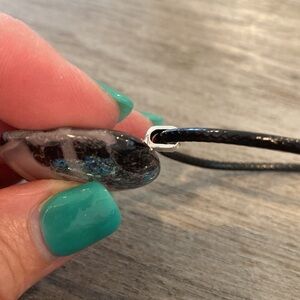 Hand crafted 2 tone purple and dichroic smooth fused glass pendant on black cord