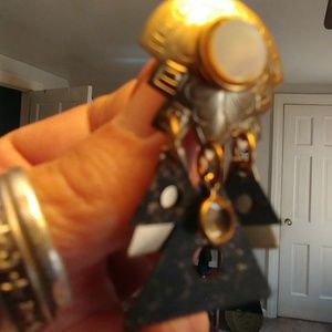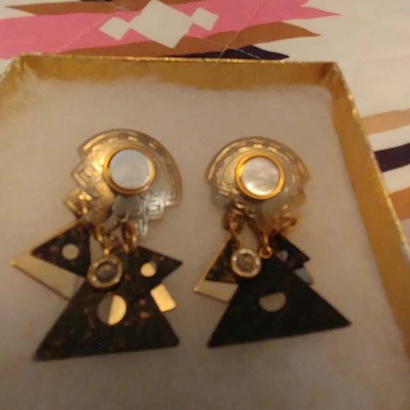 Really nice hanging earrings. There are triangles hanging with different designs on that also a stone hanging from each one and on each one. I don't know if my father bought them from Africa or if they came from Kohl's LOL...NWOT