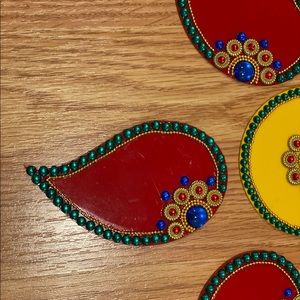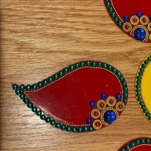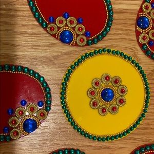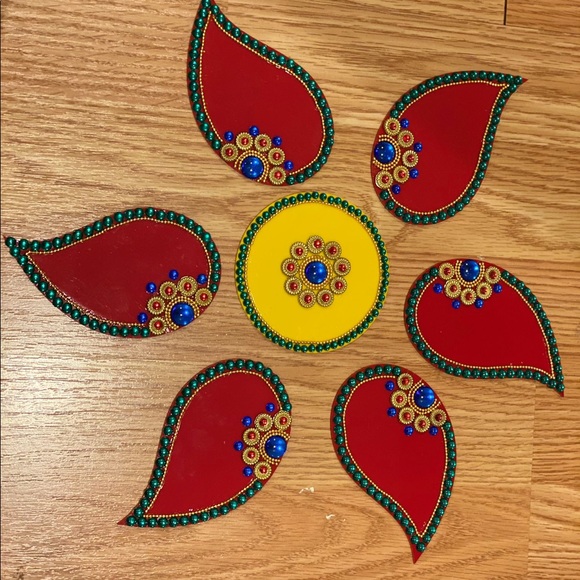 Handcrafted acrylic rangoli 7 pieces Floor decor, entryway decor Perfect gift Red and yellow