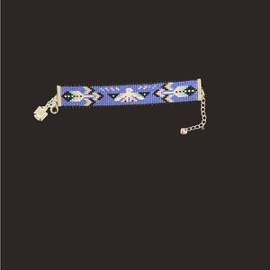 This artisan-made bracelet demonstrates intricate beadwork and includes an extender and charms. The adjustable design ensures a good fit for most wrist sizes, making it a thoughtful gift for anyone who appreciates unique, handmade jewelry with cultural significance.