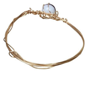 Wire Wrapped Marble Sphere Real 14K Gold Plated Copper Wire Bangle