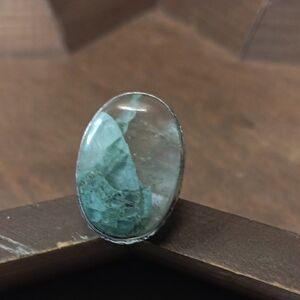 This beautiful handcrafted ring showcases a smooth, round aventurine gemstone with soft green hues that symbolize luck and prosperity. The stone is set in a detailed silver-plated bezel with twisted rope edging and a polished 925-stamped band. Elegant and timeless, it’s the perfect accessory for everyday wear or gifting. Comes in a gift box — ready to give or wear. Smoke-free home. Fast shipping.