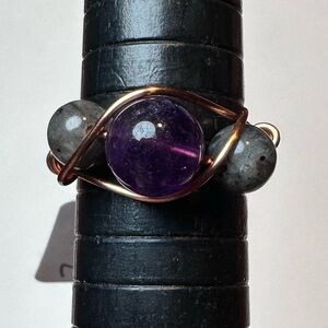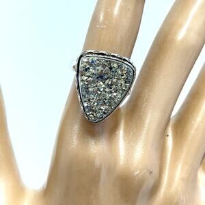 Hand crafted aventuraventuri Gemstone Round Ring Silver Plated 925 Size 7.75 New