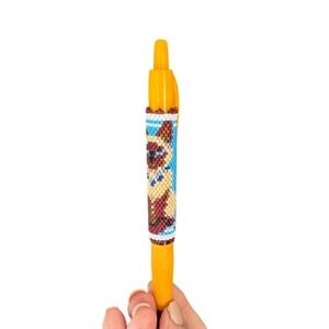 This fun beaded pen wrap celebrates the beauty and majestic nature of the beloved Siamese cat breed. This particular cat is sitting quietly, staring straight ahead and is wearing a beautiful jeweled color, as is his due, of course, being the regal and royal animal that he is. This pen wrap can be easily removed and put on other G2 pilot pens. For added fun and uniqueness this pen has beige/gold/yellow ink in a limited edition color — which is reflected in the color of the pen, and it’s showing the last listing   — but I can easily change it to a classic blue or black color pen and ink color upon request.